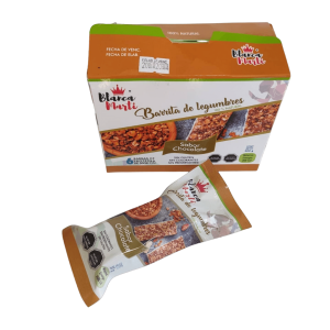 Barritas de Legumbres Natural: contienen harina de garbanzos, frutos secos,( nueces, pasas, almendras), canela, vainilla y endulzadas con miel, su presentación es de 50 gramos, sin gluten. Ideal para colación, tente en pie entre comidas, son grandes saciadoras del apetito, su abre fácil les permite llevar a cualquier lado, siendo tus fieles acompañantes de aventuras.